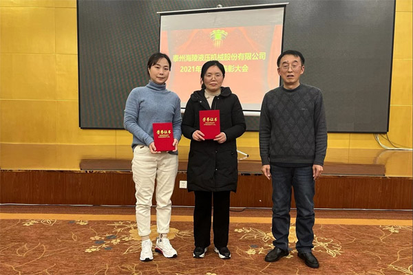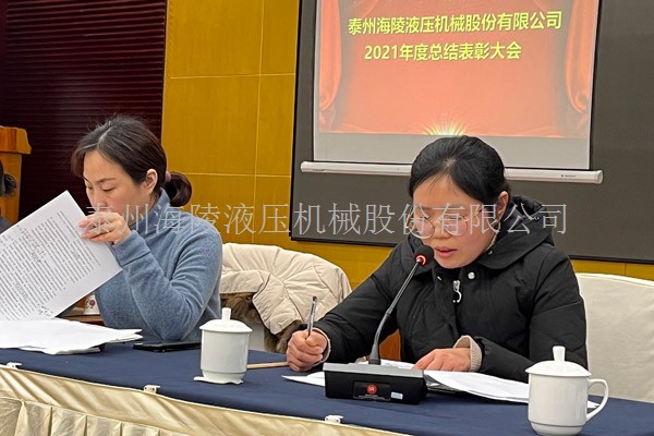 2022年1月20日上午9時許,泰州海陵液壓機械股份有限公司在泰州賓館召開2021年度會議暨年度總結表彰大會,董事長丁克芳、董事會所有成員及全體職工出席會議!