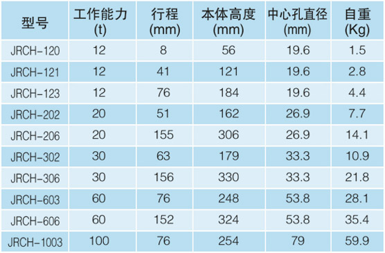 我公司設計制造的單作用空心張拉千斤頂JRCH系列使用空心柱塞的設計,既可作用于推力又可以作用于拉力;適用于各類測試、維修以及需要張拉力的特殊應用場合。